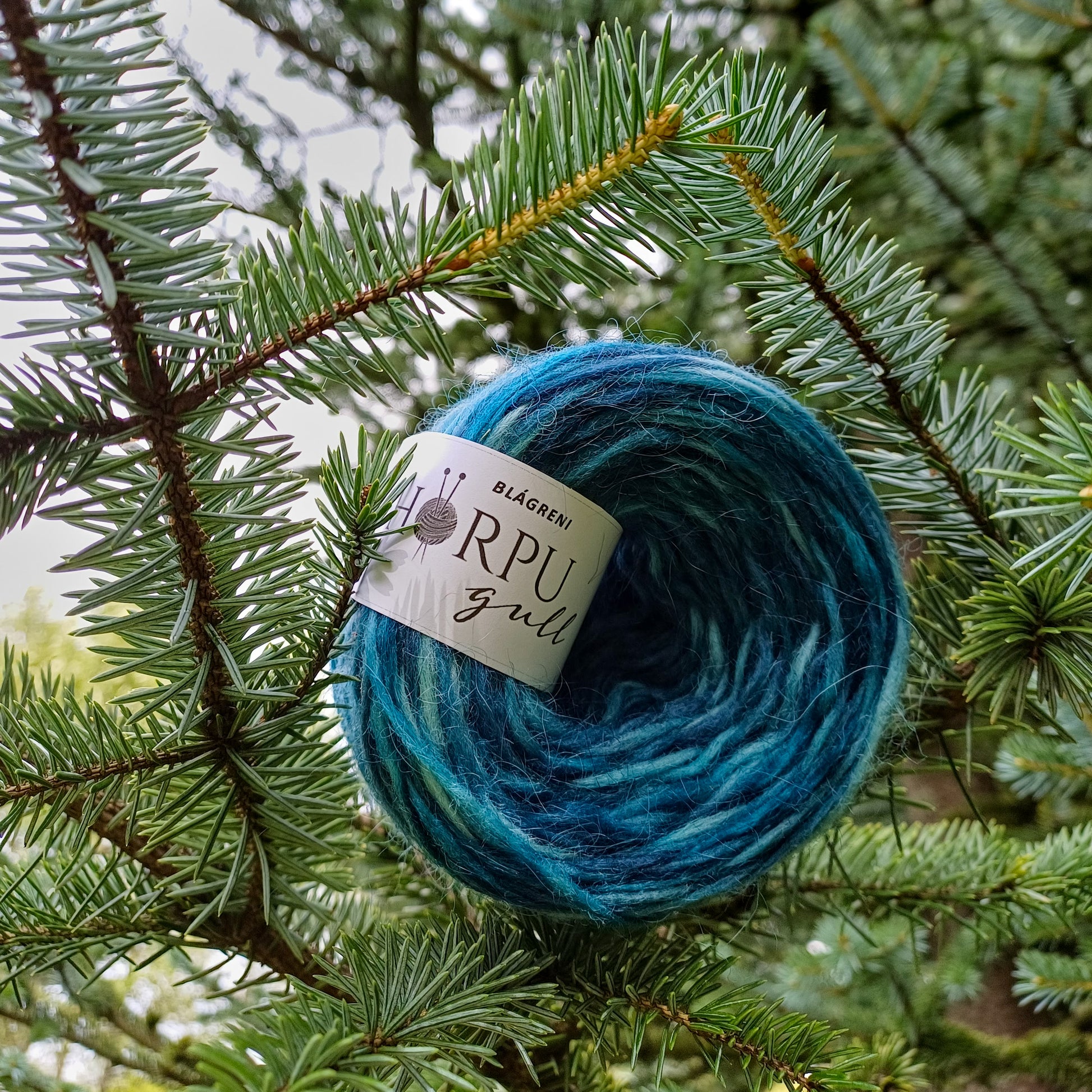Hörpugull is 1-ply unspun white wool from first class Icelandic lambwool that is hand-dyed with acid-dyes. Hand-dye makes each skein unique and brings a variety of vivid and bright colours, so the colour can vary from the colour shown here on photo.