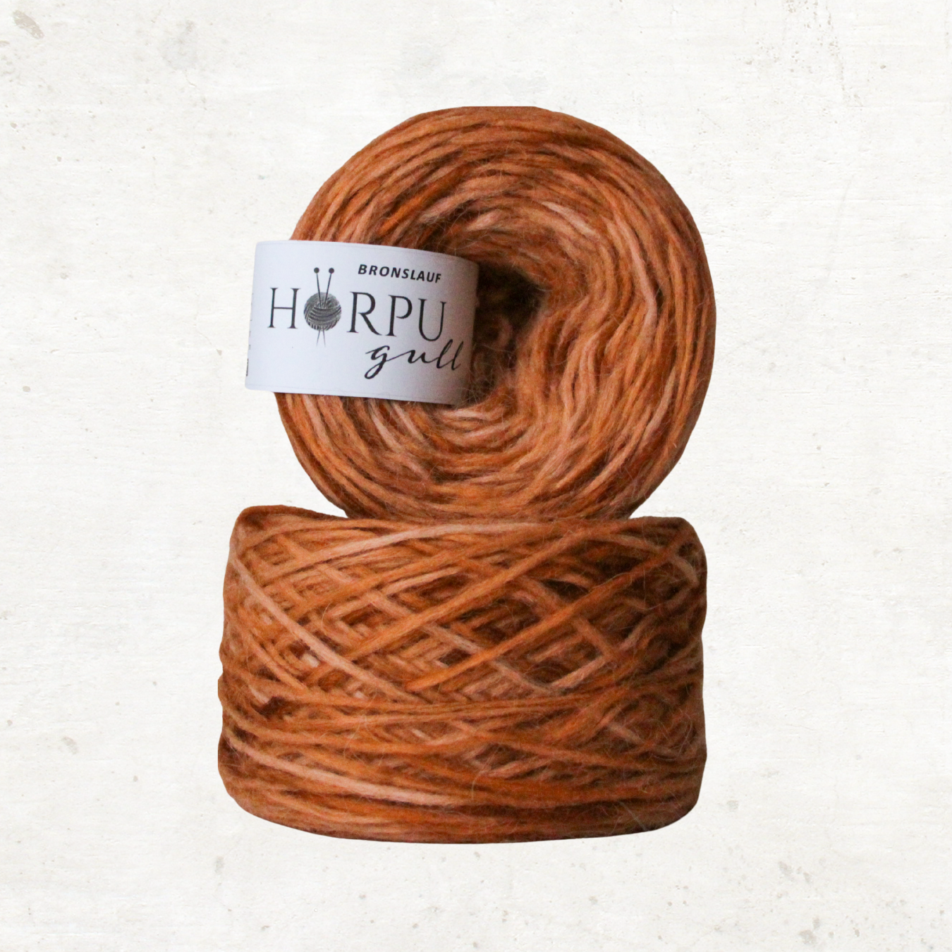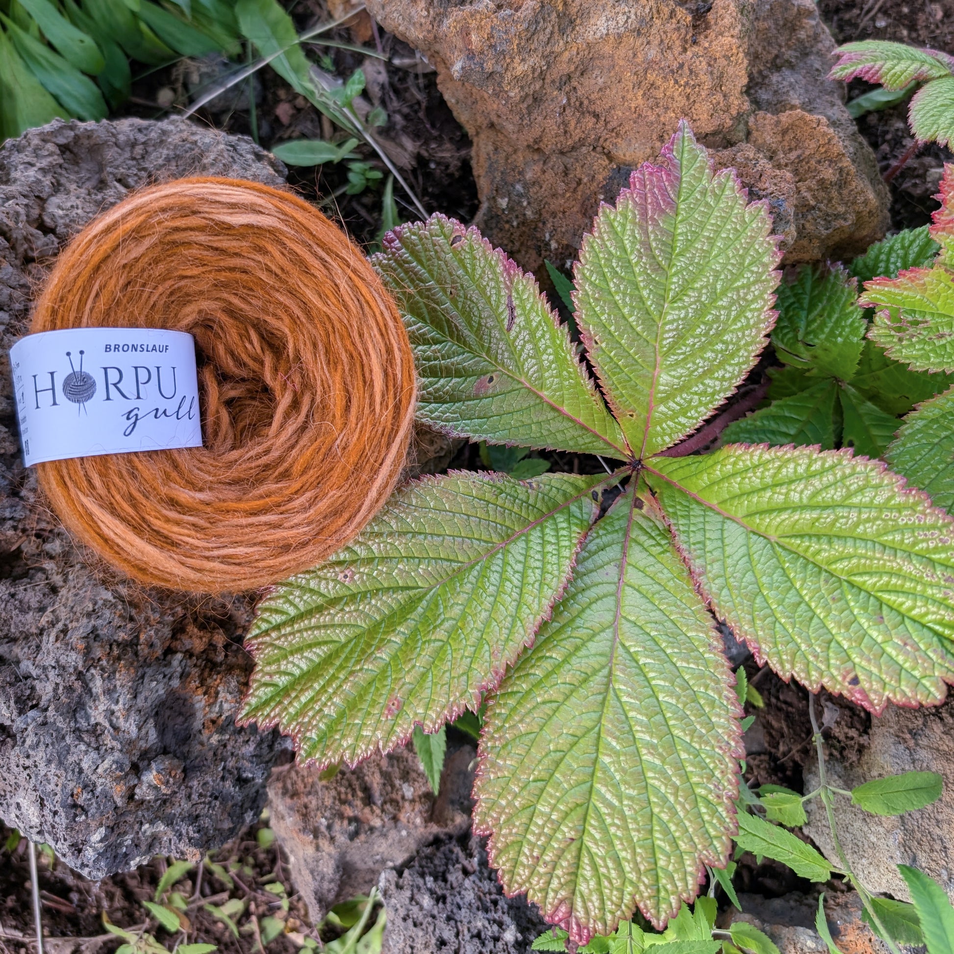 Hörpugull is 1-ply unspun white wool from first class Icelandic lambwool that is hand-dyed with acid-dyes. Hand-dye makes each skein unique and brings a variety of vivid and bright colours, so the colour can vary from the colour shown here on photo.