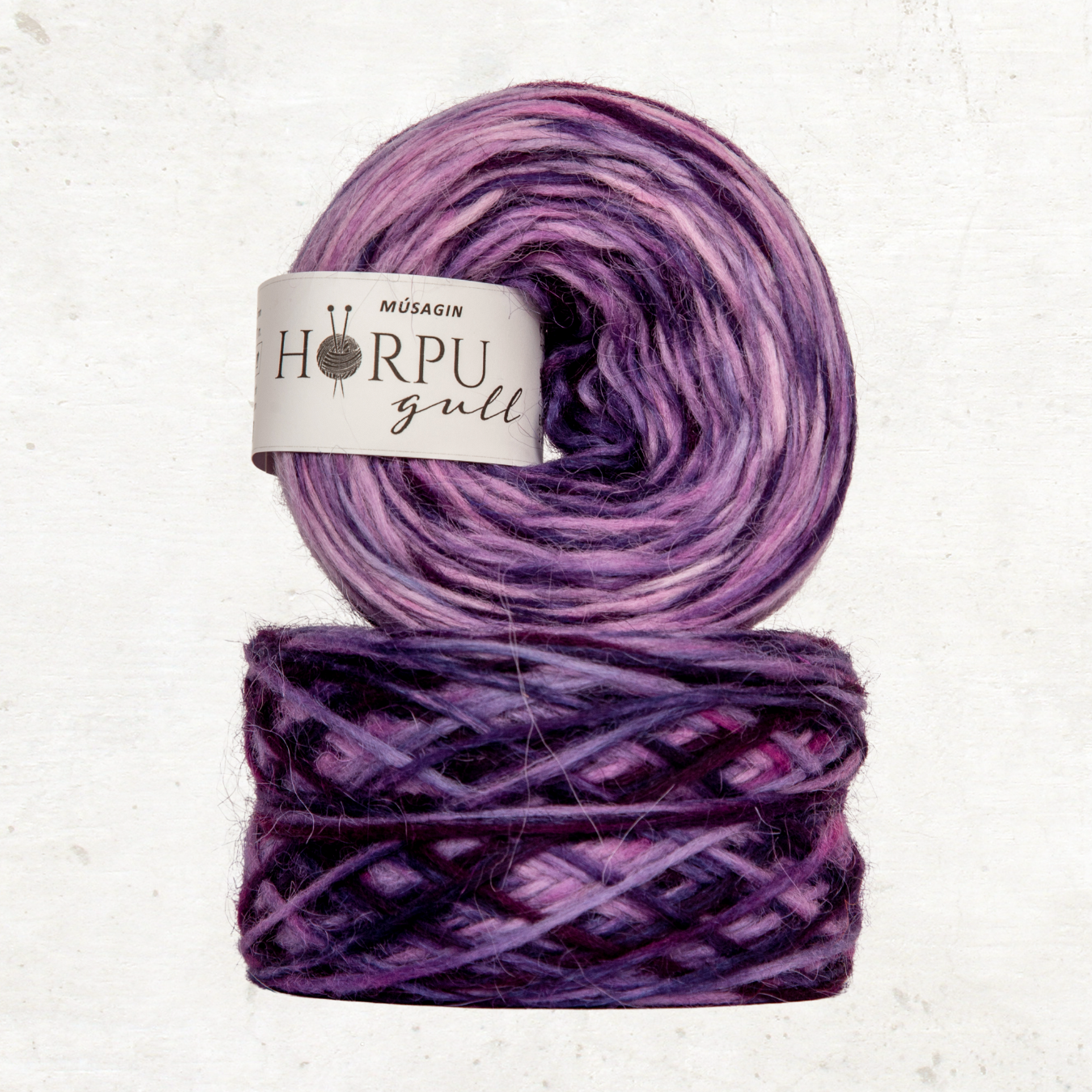 Hörpugull is 1-ply unspun white wool from first class Icelandic lambwool that is hand-dyed with acid-dyes. Hand-dye makes each skein unique and brings a variety of vivid and bright colours, so the colour can vary from the colour shown here on photo.