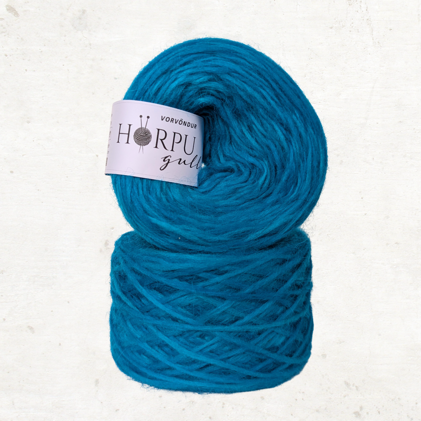 Hörpugull is 1-ply unspun white wool from first class Icelandic lambwool that is hand-dyed with acid-dyes. Hand-dye makes each skein unique and brings a variety of vivid and bright colours, so the colour can vary from the colour shown here on photo.
