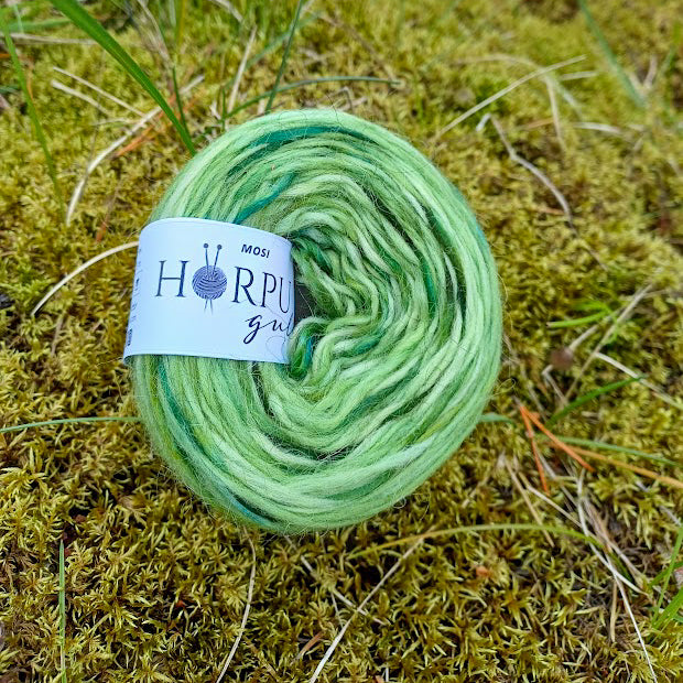 Hver dokka inniheldur einfaldan hvítan Þingborgarlopa sem er unninn úr sérvalinni fyrsta flokks lambsull. Til að ná fram björtum og skínandi litum er hvítur lopi handlitaður með ediksýrulitun sem að gerir hverja dokku einstaka og ólíka annarri - allt eftir því hversu fylltur liturinn er.